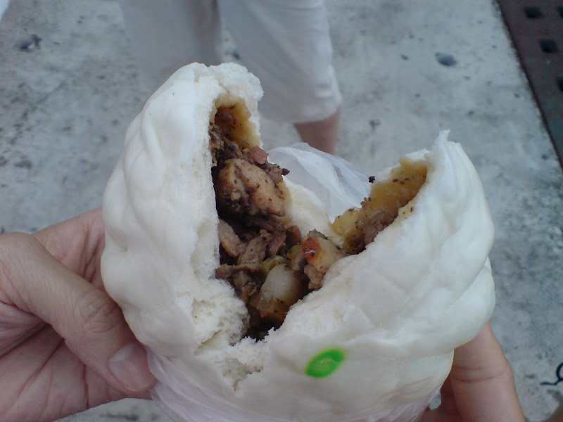 等了約一個多小時後,我們終於買到包子了,因為不想再等下去,所以我們就買排到時有出爐的包子,所以是洋蔥烤肉包、培根香腸包、麻糬紅豆包,還有一個啥排骨包的吃掉了忘記拍。